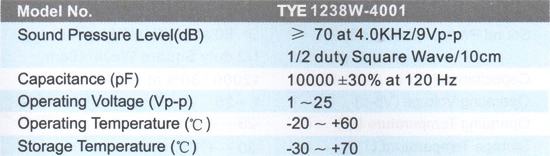 TYE1238W压电蜂鸣器