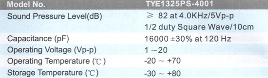 TYE1325S 压电蜂鸣器