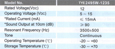 TYE2495W压电蜂鸣器